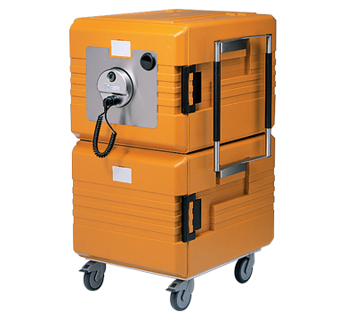 Removable and self-regulating PTCheating unit ON/OFF switch via socket Maximum temperature 95°C Made from pore-free physiologically safe plastic Seamless welded double-walled internal and external container CFC-free PU insulation foam Sturdy clamping clips and folding handles made of impact-resistant plastic Exchangeable floor rails for Rieber stacking system Exchangeable meal cards