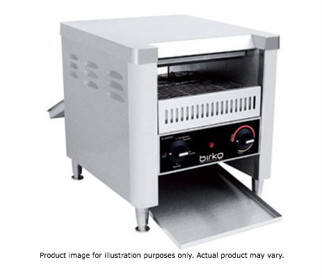 1003202 Birko – Conveyor Toaster – Masses of golden toast for high-volume kitchens. Simply feed in the bread for perfect toast to roll out at up to 600 standard slices per hour. Ideal for hotels, catering and schools. Commercial quality – steel conveyer belt, motor and gears, metal elements(upper/lower) and stainless steel (#304/#430) construction with stylish brushed finish Fingertip control – European energy control, feed and return operation or rear exit, dual element control and conveyor speed controls Practical – Removable stainless steel crumb tray and chute for easy cleaning Energy saver standby mode for quick reheat Separate upper element and combined upper/lower element temperature settings for greater control Safe – heat resistant ABS control dial and adjustable legs
