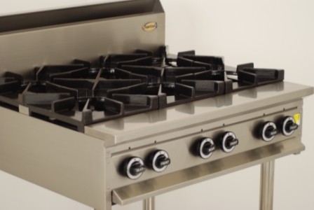 Available in both natural gas and LPG Hi- Lo two stage gas tap and sturdy 2 inch stainless steel tube stand with base shelf Made with 304 grade stainless steel exterior Flame failure automatic cut off module for boiling burners Interchangeable legs and castors