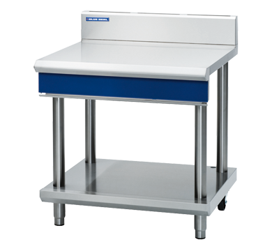 900mm bench top on leg stand 3.5mm thick compound work surface Adjustable feet at front with rear rollers Easy clean, installation and service