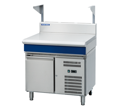 900mm bench top with salamander Support on refrigerated base 3.5mm thick compound work surface Adjustable feet at front with rear rollers Easy clean, installation and service