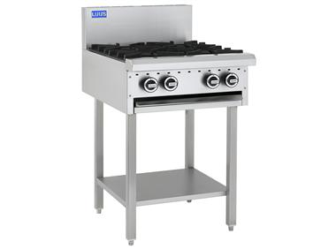 600mm wide open burner cooktop range Optional griddle/chargrills configurations available Available as a benchtop or freestanding Large undershelf storage area