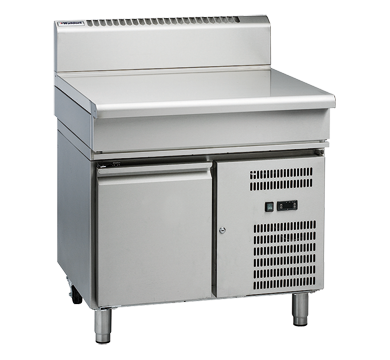 900mm bench top on refrigerated base 3.5mm thick compound work surface Adjustable feet at front with rear rollers Easy clean, installation and service