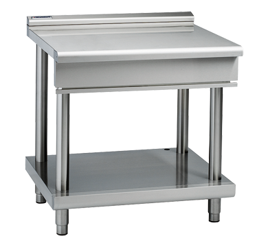 900mm bench top on leg stand 3.5mm thick compound work surface Adjustable feet at front with rear rollers Easy clean, installation and service
