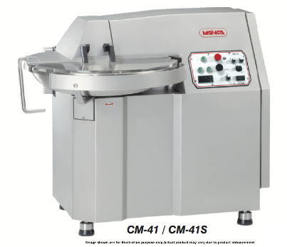 Medium to heavy duty bowl cutters in 14, 22 and 40 litre capacities (9, 15 and 25 kg). Two knife speeds and two bowl speeds. Produces consistent and homogeneous texture in products processed. Ideal for producing emulsions. Suitable for frozen meats. Available in 14, 22 and 40 Litre capacities. Removable knife head. Safety cutout switch on lid and thermal protection for motor. Digital thermometer for work with frozen and chilled foods. CM41 features an independent motor cooling fan. CE approved.