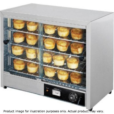 Pie Warmer & Hot Food Display – DH-580 EGO Thermostatic control 30 to 80°C easy to read & accurate temp. gauge Toughened front glass & toughened rear sliding doors Low energy use Adjustable shelves "Easy Clean" s/s interior