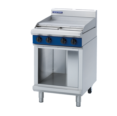 Cooktop with 600mm griddle on cabinet base 2 x 3.6kW griddle element Radiant elements with energy regulator controls Heavy-duty stainless steel finish Heavy-duty reinforced control knobs Adjustable feet and 2 additional rollers Easy clean, installation and service Optional hot plate elements