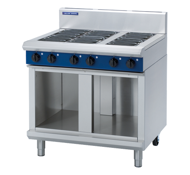 6 radiant elements cooktop on cabinet base 6 x 2.4kW radiant elements Radiant elements with energy regulator controls Heavy-duty stainless steel finish Heavy-duty reinforced control knobs Adjustable feet and 2 additional rollers Easy clean, installation and service Optional hot plate elements