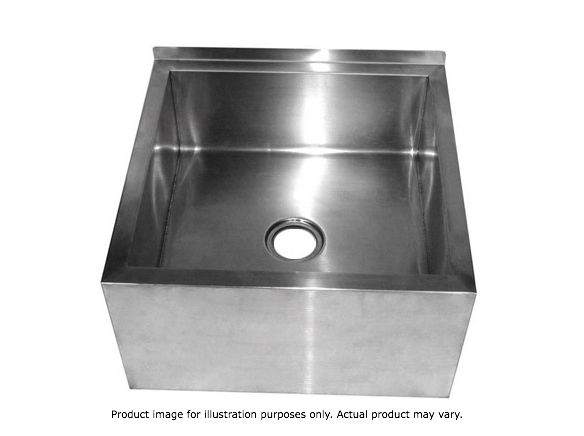 All Stainless Steel Floor Mop Sink 570 mm Wide × 570 Deep × 300 High 1.2mm material; SUS304 (18/8); Hairline finish Bowls are fully welded, polished inside & out 90 mm Ø drain hole