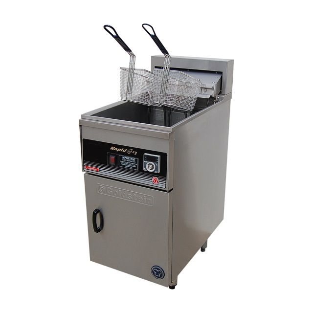 Brand: Goldstein Product Code: FRE18/1DL Single pan, stainless steel Pan size 405 x 390 x 275 Electronic thermostat 2 s/steel baskets per pan 32 litre capacity Product Code: FRE-18/1DL Weight: 65 Kg Dimensions: 457W 1120H 760D mm Power Rating: 21kW; 3 Phase