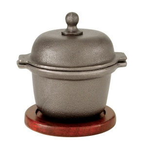 Cast Iron Pot Round Wood Base With KnobCast Iron Pot Round Wood Base With Knob