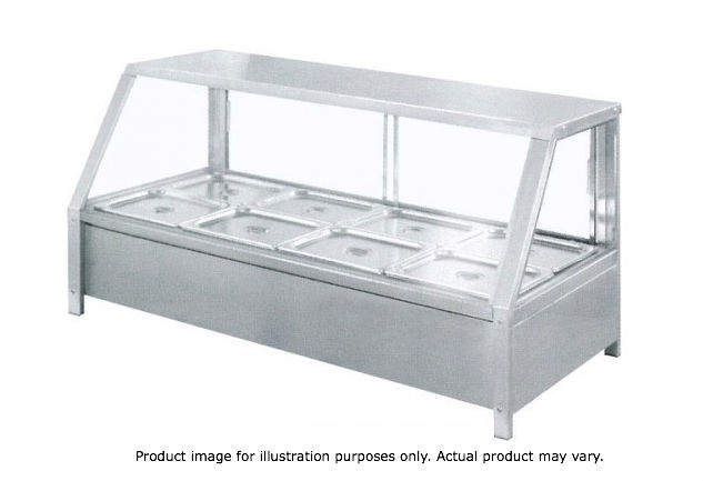TherMaster Angled Countertop Heated Bain Marie 8/2 Pans ALL STAINLESS STEEL 8 × 1/2 GN pans* 35 to 85°C Power: 240V; 3kW Thermostat control Easy to clean Quartz lighting Drain valves Sliding doors Pans  not included