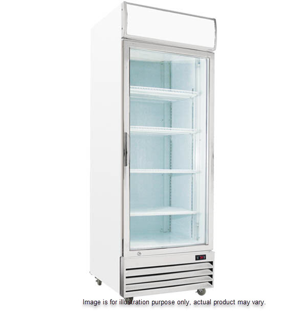 LED Lighting DISPLAY, MERCHANDISING or DRINK FRIDGE Large Single Door 600 Litre Refrigerated • 2 to 8°C Double glazed doors with air curtain defrost Extremely efficient self-closing doors with locks Insulation is CFC & HCFC free Internal corners are rounded for hygiene & easy cleaning Ambient 38ºC & 65% RH L.E.D. lighting inside Light box Castors