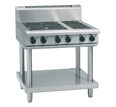 4 radiant element cooktop with 300mm griddle on leg stand 4 x 2.4kW radiant elements 1 x 3.6kW griddle element