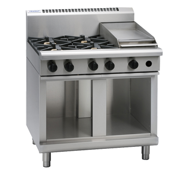 4 burner cooktop with 300mm griddle on cabinet base 4 x 28MJ/hr open burners 1 x 20MJ/hr griddle burner