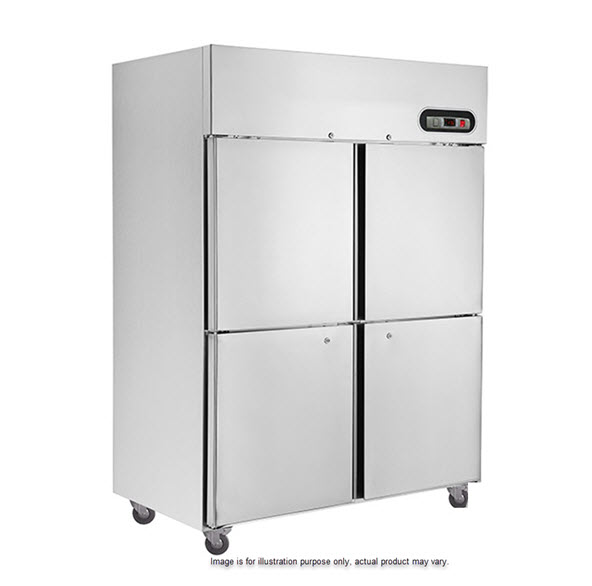 TROPICAL Thermaster 4×½ Door SS Fridge Stainless Steel Exterior & Interior Capacity: 1200 Litre Refrigerated: 2 to 8°C Ambient: 43ºc & 90% Rh Embraco Compressors & German Ëbm-Pabst Fans Dixell Digital Temp. Controller & Read-Out Internal Corners Are Rounded For Hygiene & Easy Cleaning Castors