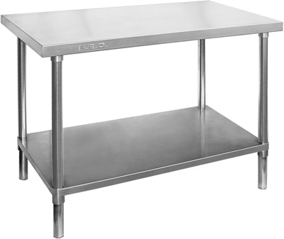 All Stainless Steel Flat Workbench with solid undershelf Free optional leg brace instead of solid shelf 700 mm deep × 900 mm high Specially designed for quick & simple assembly Come with instruction manual & tools Supplied flat-packed for ease of transport 4 legs per bench – 2100 & 2400 mm wide benches have 6 legs 1.2mm material; SUS304 grade (18/8); Hairline finish Locking drawers available Legs 1.2 mm material; SUS304 (18/8); BA finish; 42 mm Ø Fully adjustable SUS304 polished disc feet that match the legs perfectly Castor kits available (lockable) Benchtops 1.2 mm material; SUS304 (18/8); Hairline finish Lined with XPS board, 20 mm thick & SUS430 panel Special ‘U’ channel reinforcements under; SUS304 1.2 mm thick – as the bench size increases so does the the number of channels Undershelves 1.2mm material; SUS304 (18/8); Hairline finish Special ‘U’ channel reinforcements under to suit the bench type & size, and as the bench size increases so does the ‘U’ channel width; SUS304 1.2 mm thick