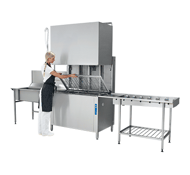 Capacity of 100 baskets per hour 6-8 litres per cycle water consumption 120 litre wash tank volume 3 levels of wash cycle for varying types of soiled product 2 x 2.35kW wash pump with 12kW booster heater Automatic hood Automatic cleaning program Electronic control panel with clear display on wash information Automatic control of final rinse temperature 600mm high wash chamber clearance Includes break tank with booster pump Adjustable washing pressure for normal and heavily soiled loads Double skinned, insulated stainless steel construction Deep tank strainers Self-draining wash arms for optimum wash results Easy to access large filters and strainer baskets for less frequent emptying
