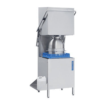Simple program selection – 3 levels of wash cycle for varying types of soiled product Auto Start function Electronic control panel with event log recording for diagnostics and trouble shooting Automatic cleaning program Self-draining wash arms for optimum wash results 1.1kW wash pump with 9kW booster heater Smooth internal surfaces for easy cleaning Stainless steel construction Corner or in-line installation Supplied with 3 high quality dish racks Automatic hood Drain pump Detergent pump for liquid detergent