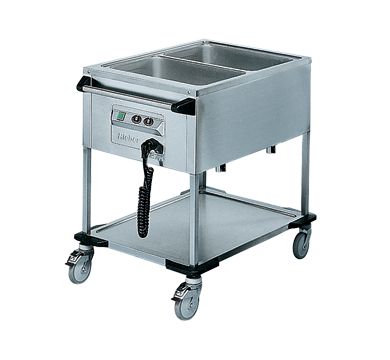 Heated delivery cart 2 x 1/1 GN capacity Deep drawn hot wells welded in Cladded and insulated on all sides