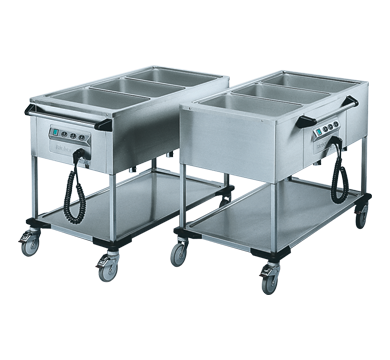 Heated delivery cart 3 x 1/1 GN capacity Deep drawn hot wells welded in Cladded and insulated on all sides