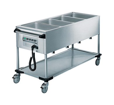Heated delivery cart 4 x 1/1 GN capacity Deep drawn hot wells welded in Cladded and insulated on all sides